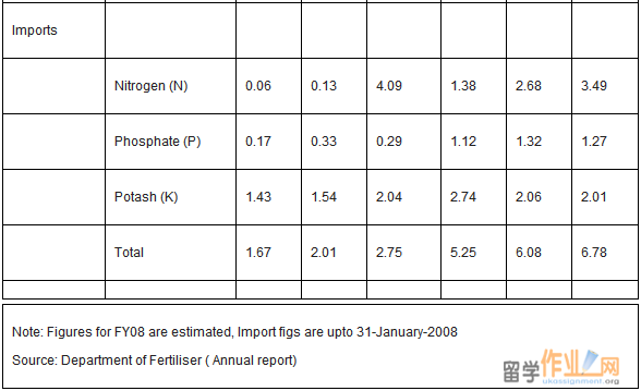 The production fertilisers stood at 11.57 mn MT for nitrogenous fertilisers and 4.51 mn MT for phosphatic fertilisers in FY07. This witnessed a to 11.12 mn MT for nitrogenous fertilisers and 4.06 mn MT for phosphatic fertilisers in FY08. Rising price of crude oil, whose derivatives are used as a key input in fertilizer plants as well as that of other raw materials, coupled with capacity limitations and delay in payment of subsidies by the Government led to the shortfall in fertilizer production in 2007-08.